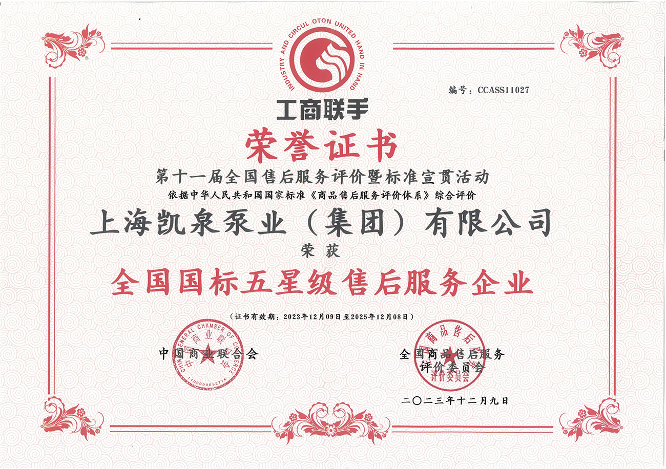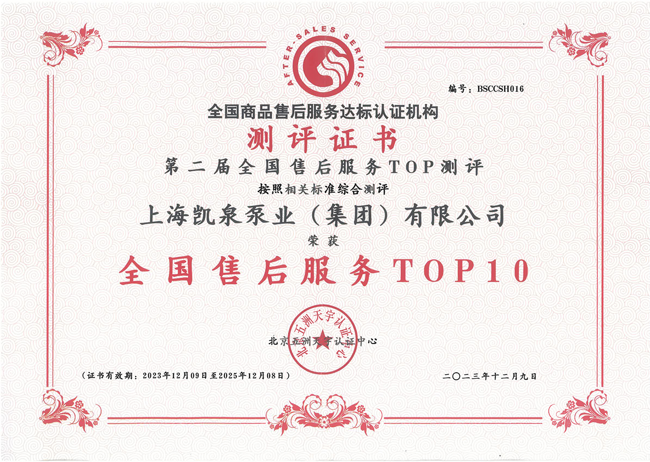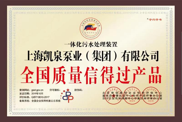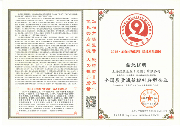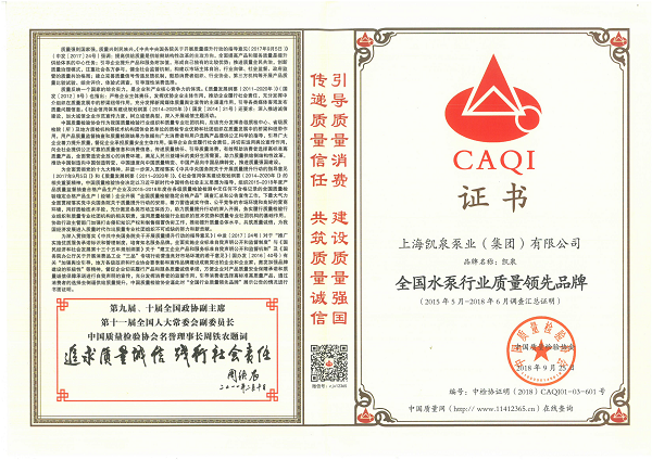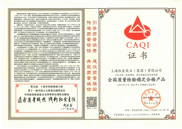凱泉品牌被評為“全國水泵行業質量領先品牌”