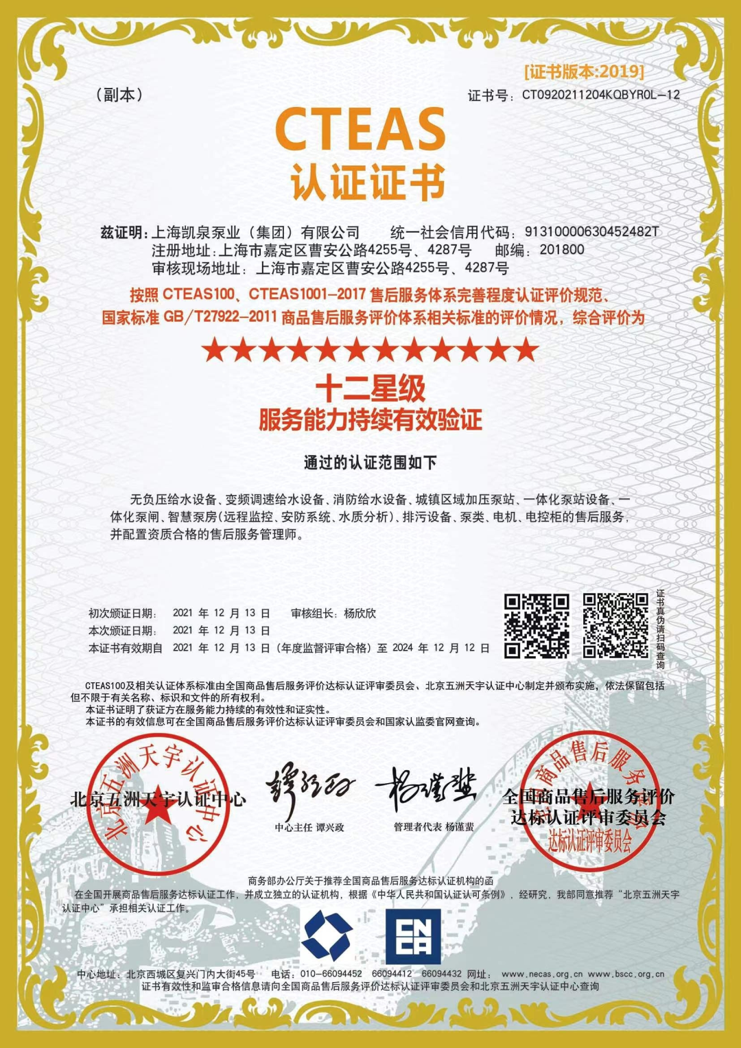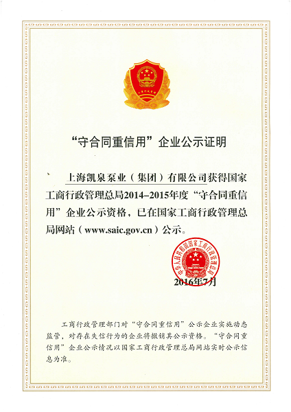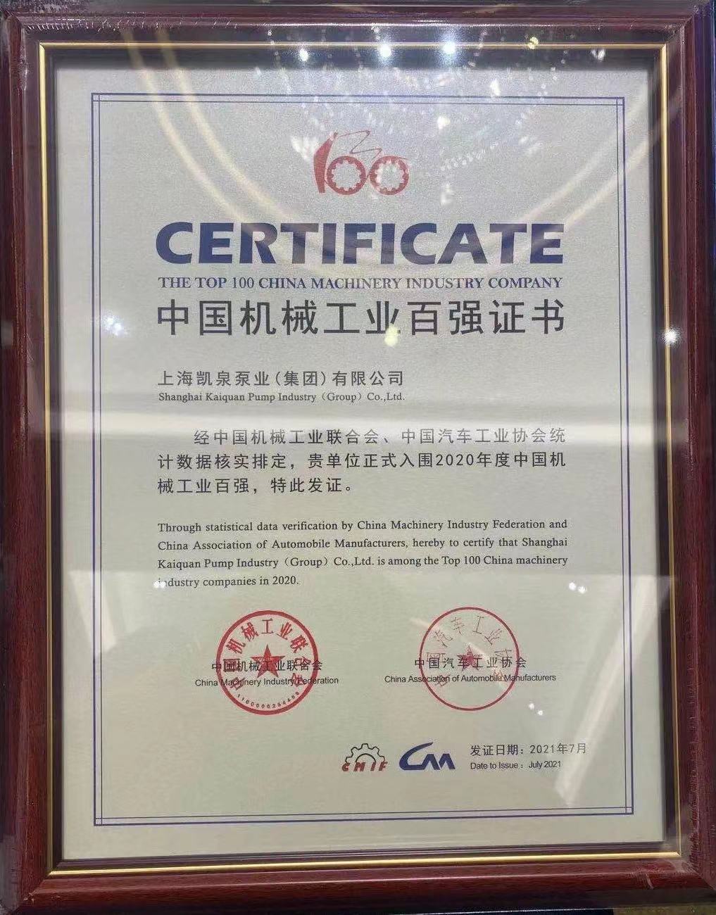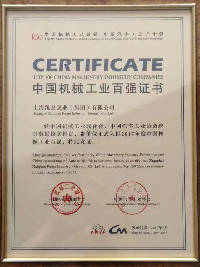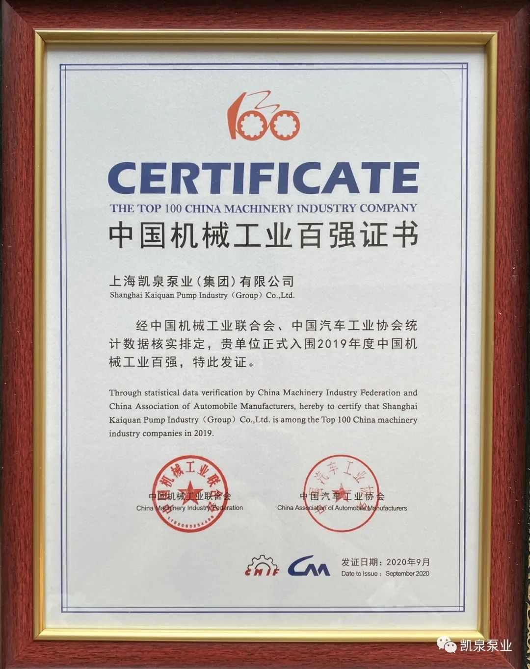 凱泉品牌被評為“全國水泵行業質量領先品牌”