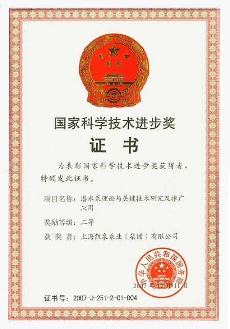 集團潛水泵理論與關鍵技術研究及推廣應用榮獲“國家科學技術進步獎二等獎”