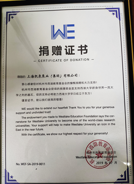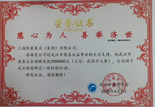 集團收到捐贈武漢(抗疫)慈善總會榮譽書