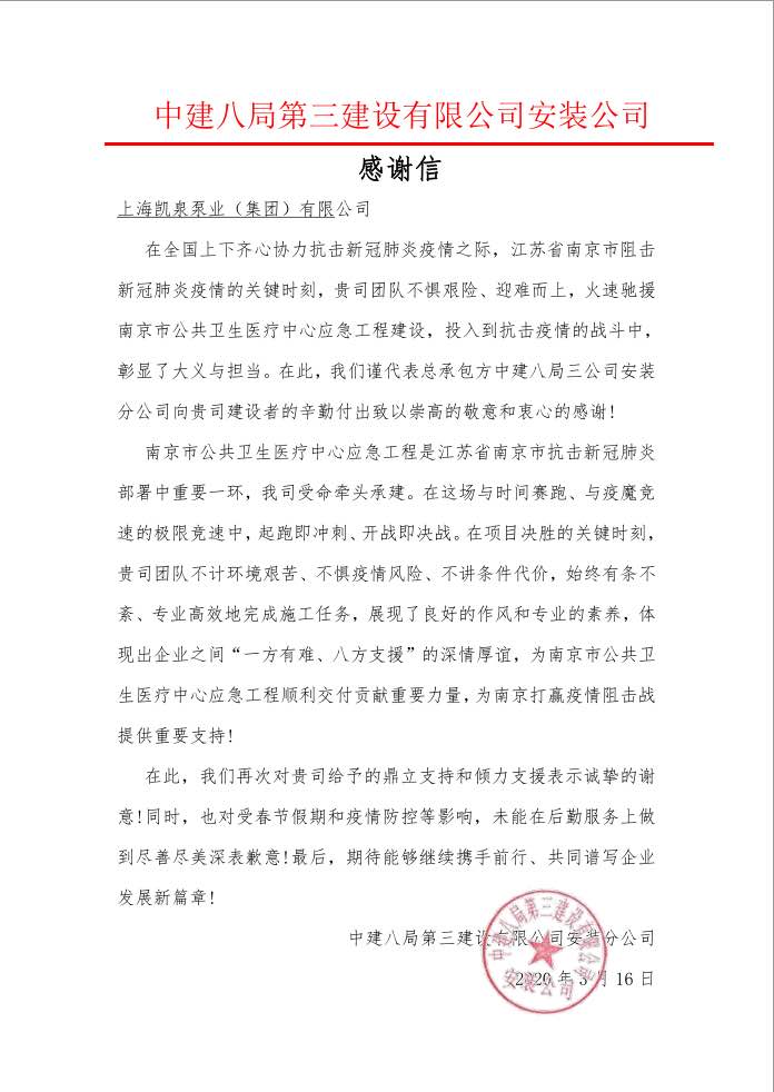 集團馳援抗疫收獲中建八局第三建設感謝信