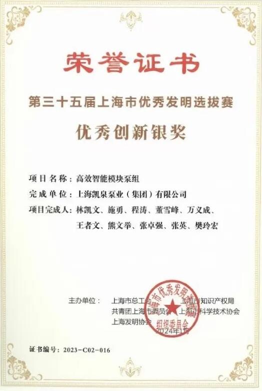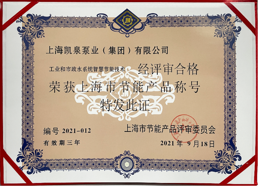 集團工業和市政水系統智慧節能技術榮獲“上海市節能產品”稱號
